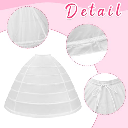2 Pcs 4 Hoop and 6 Hoop Skirt Petticoat Crinoline Underskirt Floor Length Full Shape Slip Skirt for Women Girls Wedding Ball Gown Cosplay 6