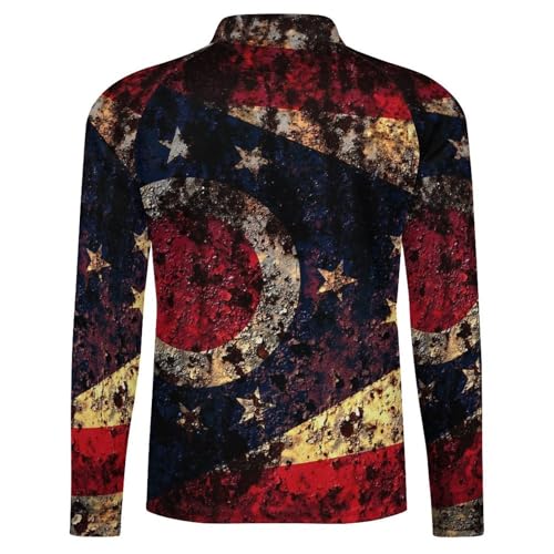 Retro Style Ohio Flag Men's Rash Guard Long Sleeves Quick Dry Fishing Workout Shirts with Zipper 6