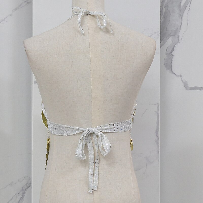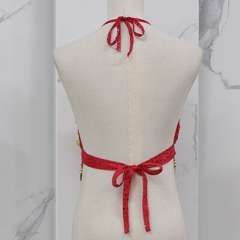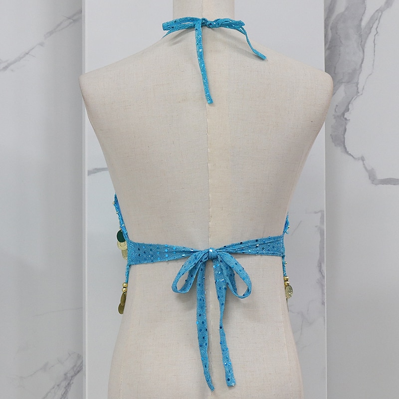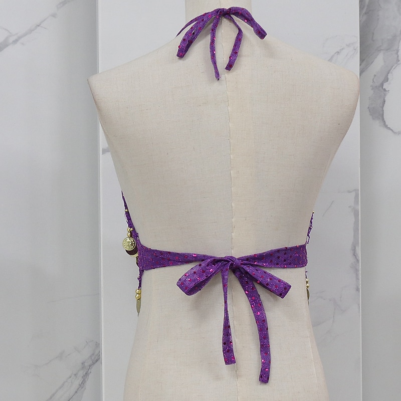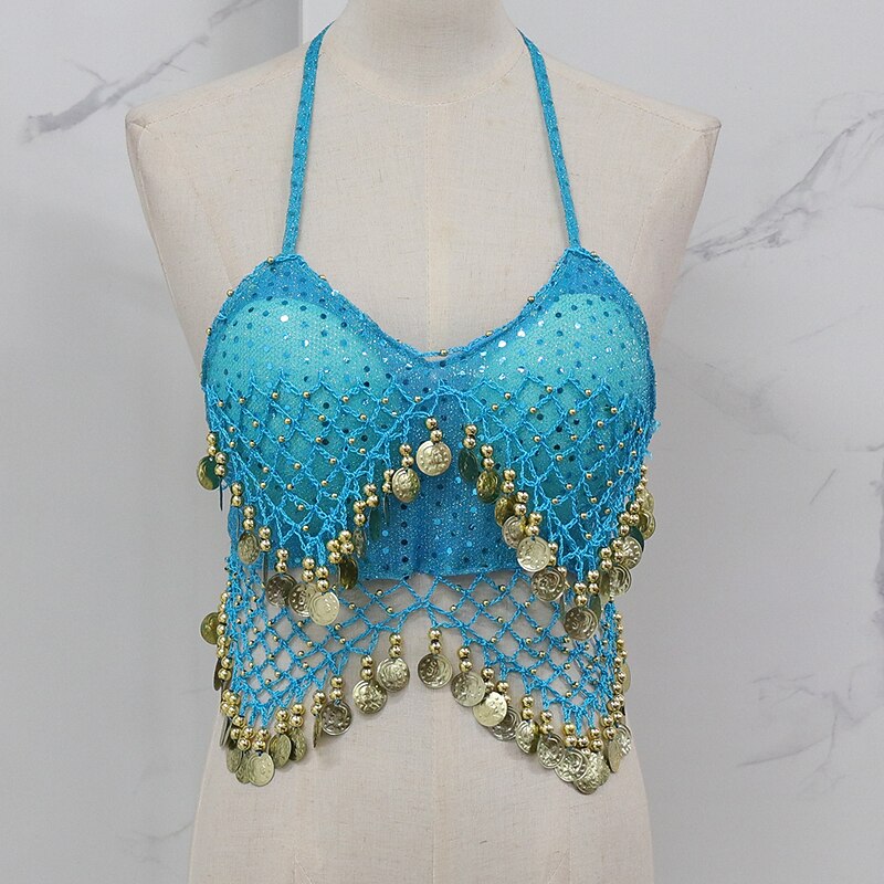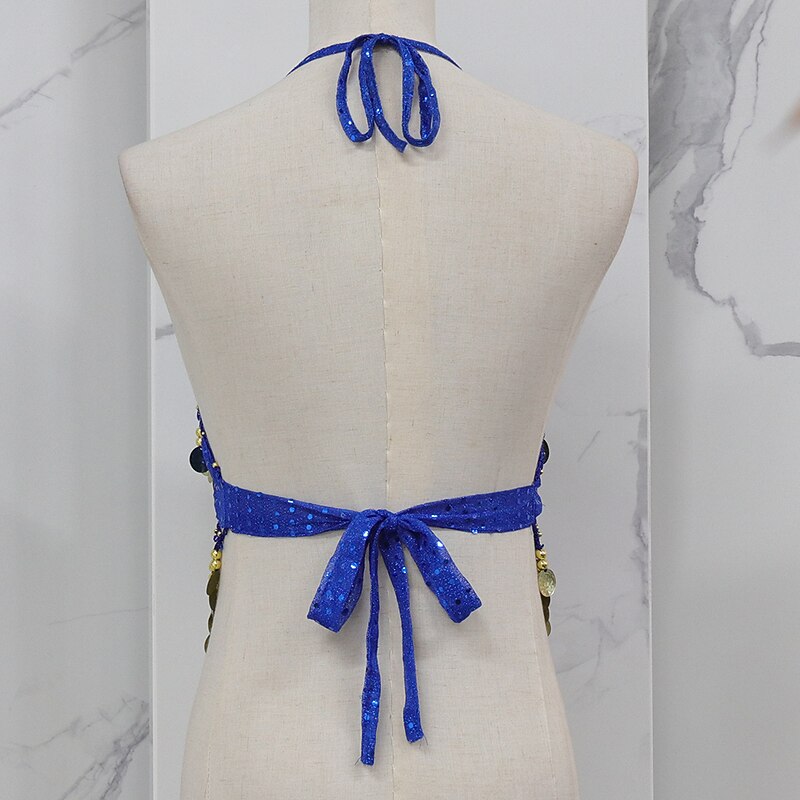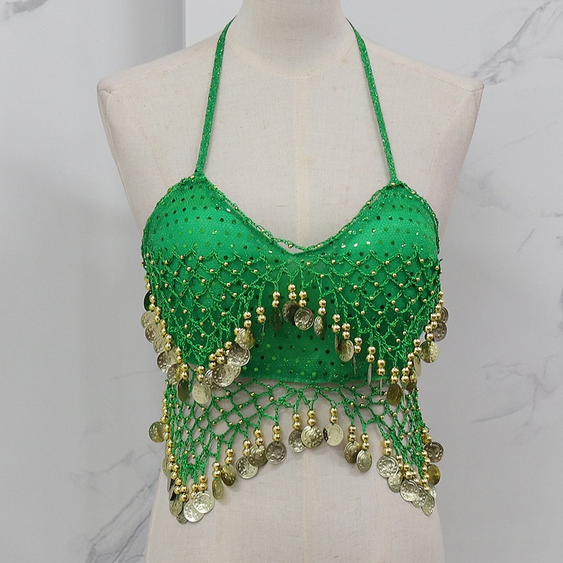 More information about Belly Dance Vest Copper Coin Pure Color Splicing Women's Performance Training Sleeveless High Polyester