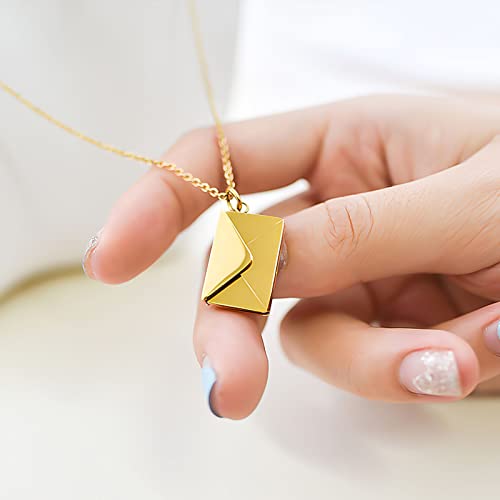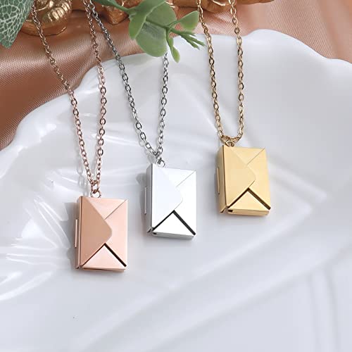 HOT ! SHINYY Envelope Love Letter Necklace for Women Stainless Steel Love You Secret Gift Message Engraved Locket Jewelry Pendant Couples and Family