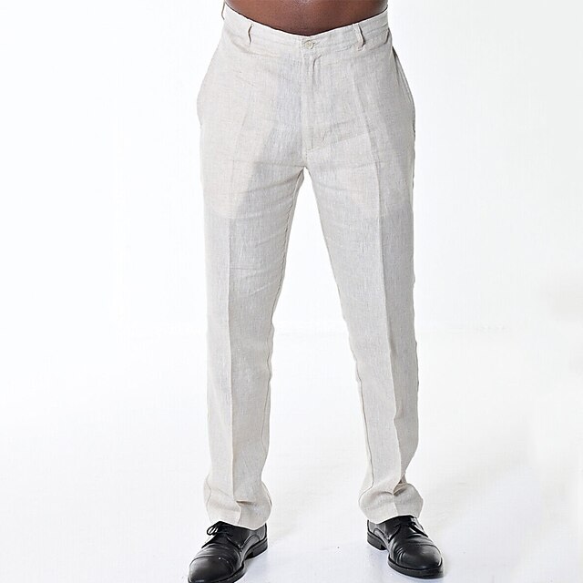 HOT ! Men's Linen Pants Trousers Dress Pants Summer Pants Beach Pants Plain Comfort Breathable Outdoor Daily Streetwear Stylish Casual Black White Inelastic