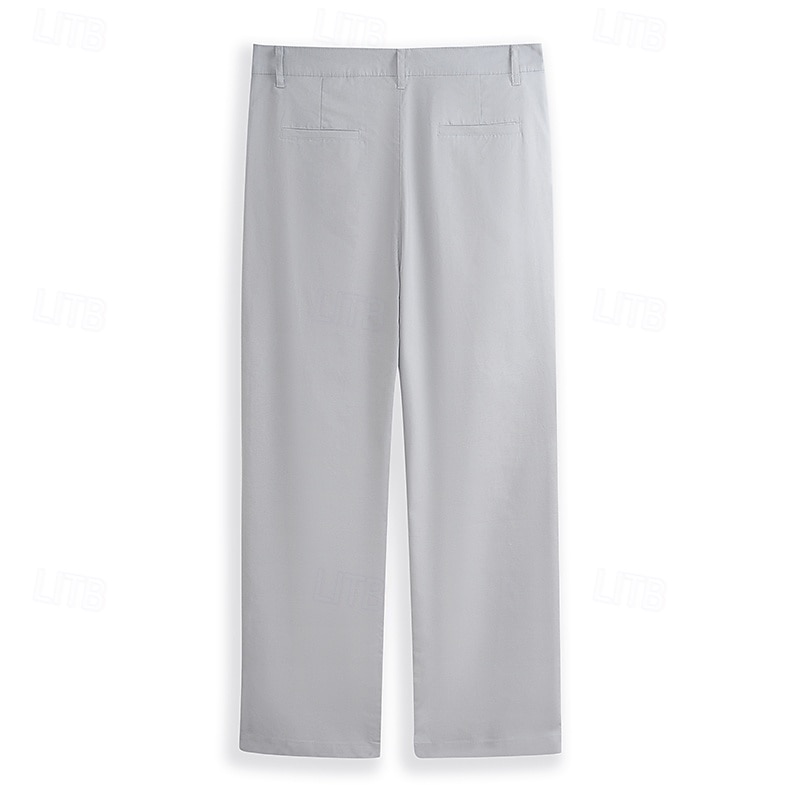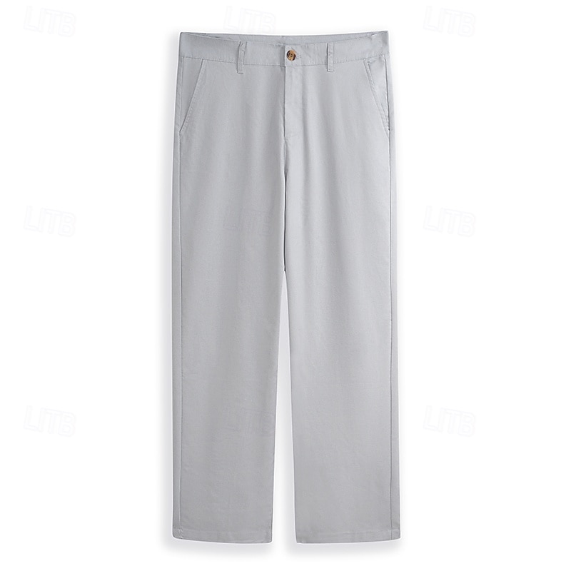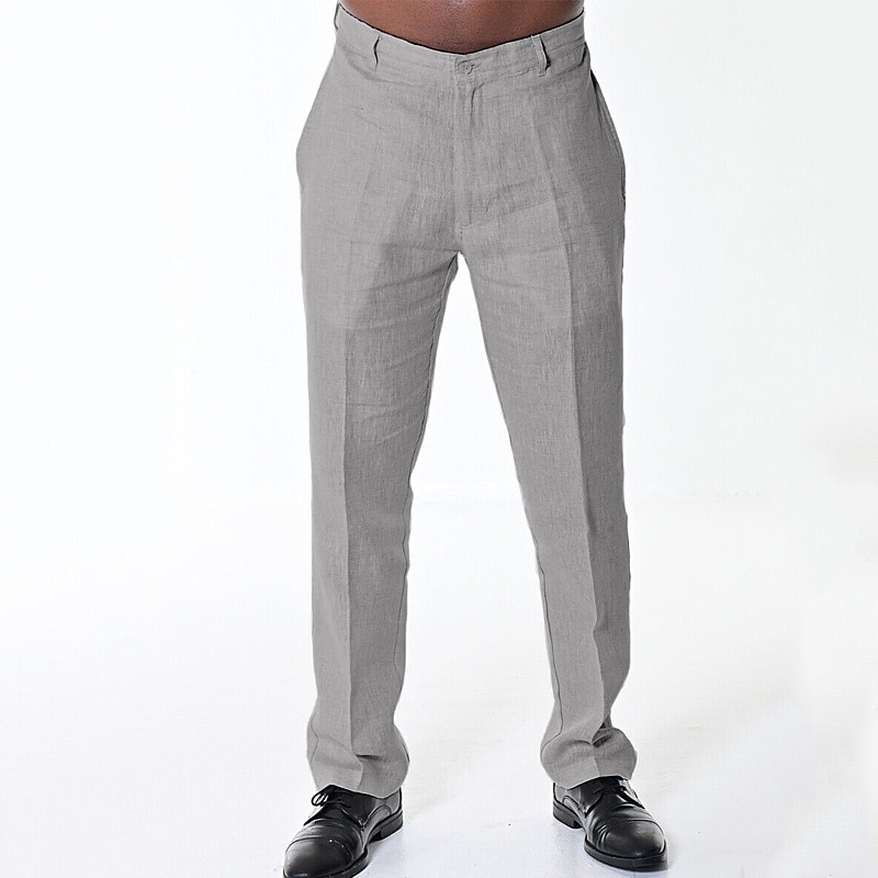 Highlights [Fabric] Crafted from a premium linen cotton blend, these men's trousers are lightweight and breathable, making them perfect for warm weather wear. The fabric's natural texture offers a relaxed yet sophisticated appeal. [Fit] These trousers boast a regular fit with a straight-leg design, providing a classic and versatile look suitable for a range of occasions, from formal events to casual outings. [Design Highlights] Featuring a standard button and zipper closure, along with functional belt loops, these pants offer both practicality and style. The plain pattern lends a clean, timeless aesthetic, while the mid-waist design ensures comfort and ease of movement. [Occasions] Ideal for daily wear, outdoor activities, and streetwear fashion, these trousers blend comfort and style, making them perfect for dressing up or down as needed. Whether you're attending a beach gathering or navigating city streets, these pants are a go-to choice. [Size Range] Available in a comprehensive size range from S to 3XL, these trousers cater to a variety of body types, ensuring a comfortable and flattering fit for everyone.