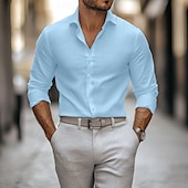 More information about Men's Shirt Linen Shirt Summer Shirt Button Up Shirt Plain Vacation Casual Black White Blue Long Sleeve Collar Spring & Summer Clothing Apparel