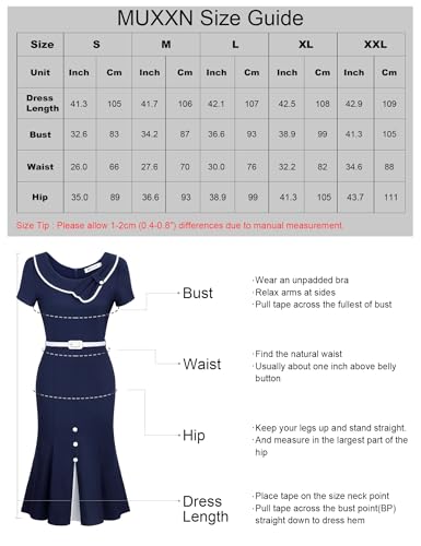 More information about MUXXN Women's Retro 60s Sailor Collar Short Sleeve Pinup Cocktail Work Mermaid Dress with Belt