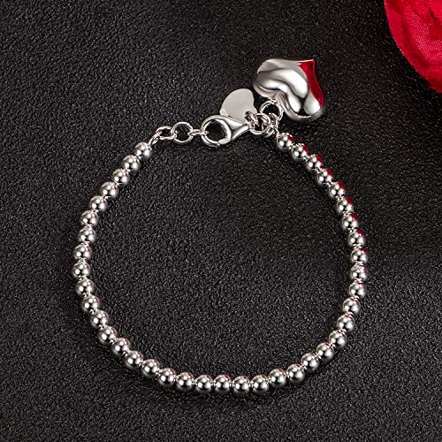H&Beautimer 925 Sterling Silver 4-10MM Ball Chain Bracelet For Women's - Italian Handmade Bead Chain Bracelet 5''5.7''6.3''6.7''7.5''8''8.3''8.5''9 Inch Rose Gold Party Jewelry 4
