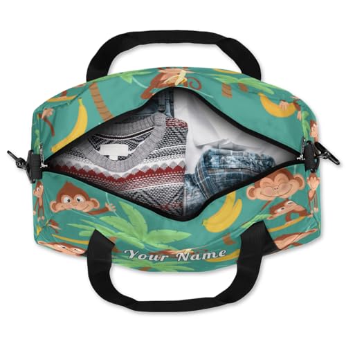 Personalized Kids Duffel Bag Tropical Monkey Banana Tree,Custom Sport Gym Bag for Boys Girls,WWeekender Overnight Bags Travel Duffel Bag,Customized Kids Gift 4