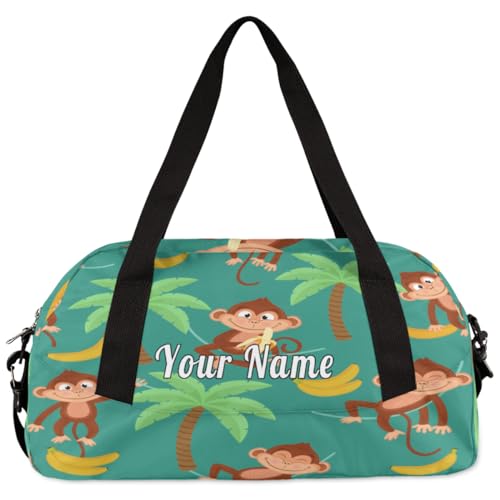 Personalized Kids Duffel Bag Tropical Monkey Banana Tree,Custom Sport Gym Bag for Boys Girls,WWeekender Overnight Bags Travel Duffel Bag,Customized Kids Gift 1