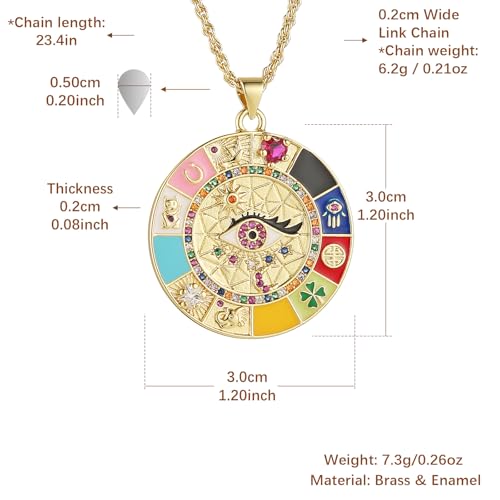 HZMAN Evil Eye Necklace for Women Retro Enamel 18K Gold Plated Round Medal Necklace Pendant Good Luck Amulet Jewelry Gift 5
