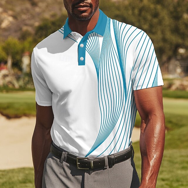 Men's Golf Line Polo Sports Polo Shirts Short Sleeve Polo Shirts Collared Shirts Casual Athleisure Buttons Summer Black Red Blue 7