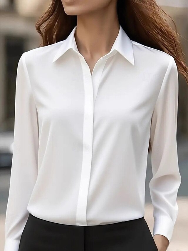 More information about Women's Work Shirt Blouse Plain Modern Casual Long Sleeve Shirt Collar Regular Tops Daily Holiday Buttons Black White Blue Gray Fall