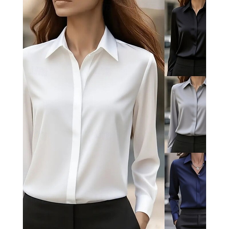 Women's Work Shirt Blouse Plain Modern Casual Long Sleeve Shirt Collar Regular Tops Daily Holiday Buttons Black White Blue Gray Fall 1