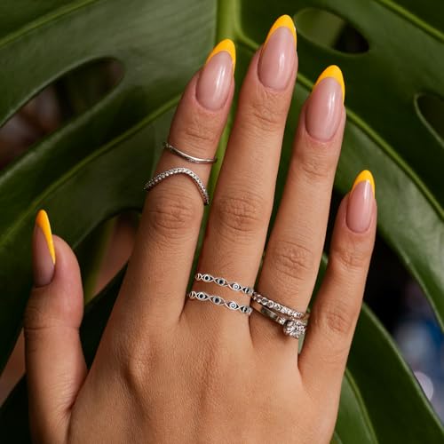 • Evil Eye Ring - Material: This stackable rings for women are made of 925 sterling silver with exquisite 5A zircon. The evil eye ring ​is nickel-free, lead-free, and cadmium-free. Our jewelry does not contain any harmful metals, has good skin-friendliness, and will not burden your delicate skin. The combination of high-quality zircon and blue evil eye is very simple but delicate