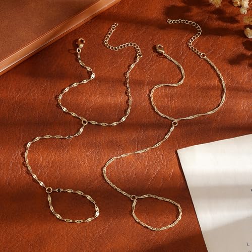Hand Chain Bracelet for Women - 14K Gold Plated Ring Hand Chain Bracelet Dainty Link Finger Ring Bracelets Gold Jewelry Gifts for Women Trendy 4