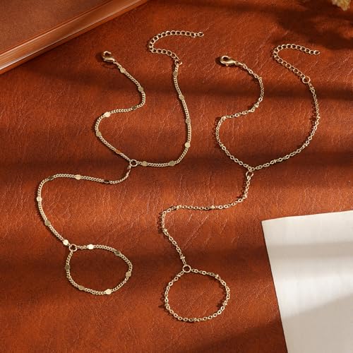 Hand Chain Bracelet for Women - 14K Gold Plated Ring Hand Chain Bracelet Dainty Link Finger Ring Bracelets Gold Jewelry Gifts for Women Trendy 3
