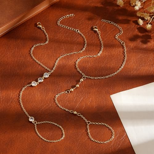 Hand Chain Bracelet for Women - 14K Gold Plated Ring Hand Chain Bracelet Dainty Link Finger Ring Bracelets Gold Jewelry Gifts for Women Trendy 2