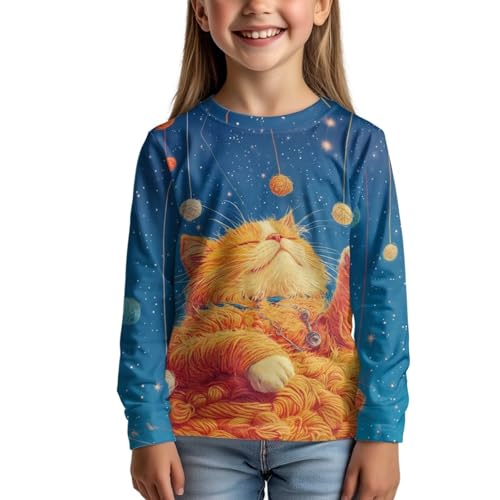 Girls Long Sleeve Tee Round Neck Shirts Youth Size 3-16 Soft Fabric Tops Lightweight Athletic Top Cute Blouses 5