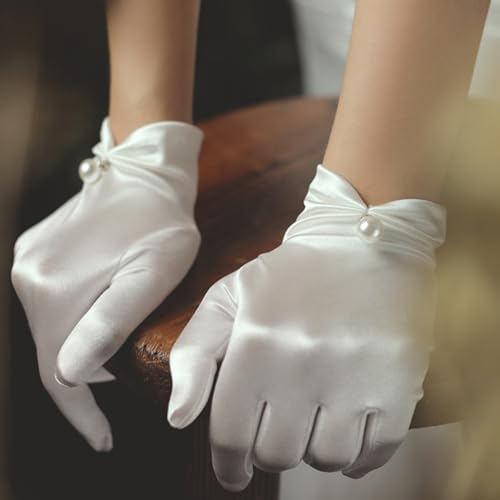 • NICE GIFT: The short satin gloves can match with hair bands, pearl necklaces, or other elegant accessories, a pleasant gift set for your mom, sister, girlfriend, and friends, make them look exquisite, graceful, and charming.