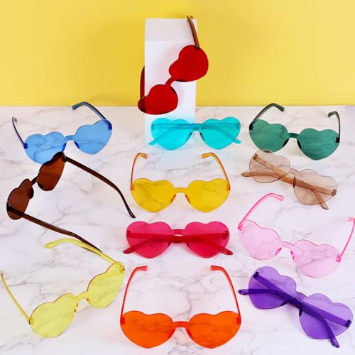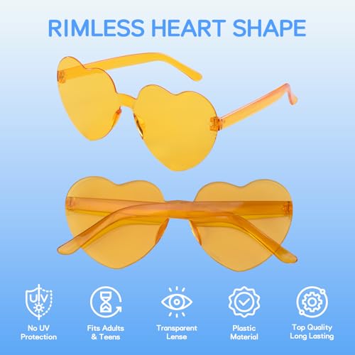 • Bright Colorful: Heart shaped rimless sunglasses have 12 vibrant transparent candy colors. It can adding a touch of colorful playfulness and charm to any outfit.