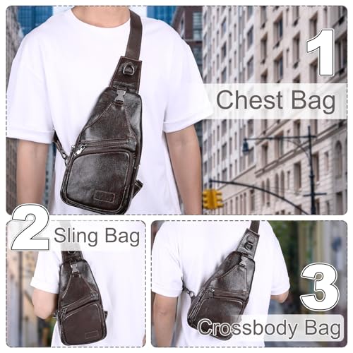 Genuine Leather Small Sling Bag - 6.69"x12.6" (LXH) Good for Men and Women Hiking Travel - Multipurpose Casual Small Packs Crossbody Chest Bag Backpack Coffee 3
