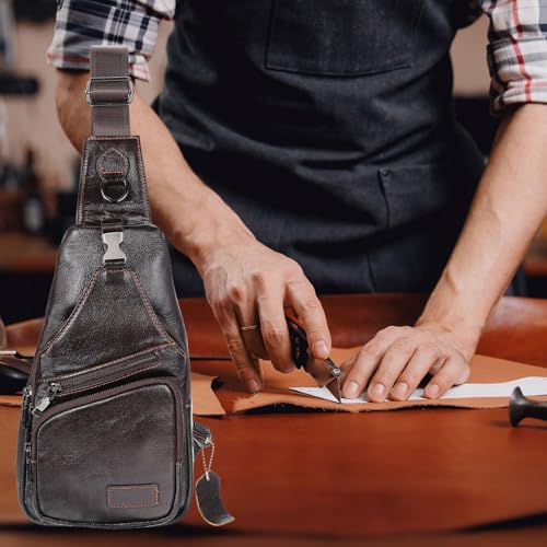 Genuine Leather Small Sling Bag - 6.69"x12.6" (LXH) Good for Men and Women Hiking Travel - Multipurpose Casual Small Packs Crossbody Chest Bag Backpack Coffee 5