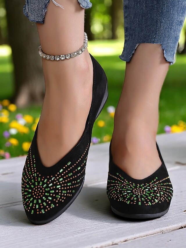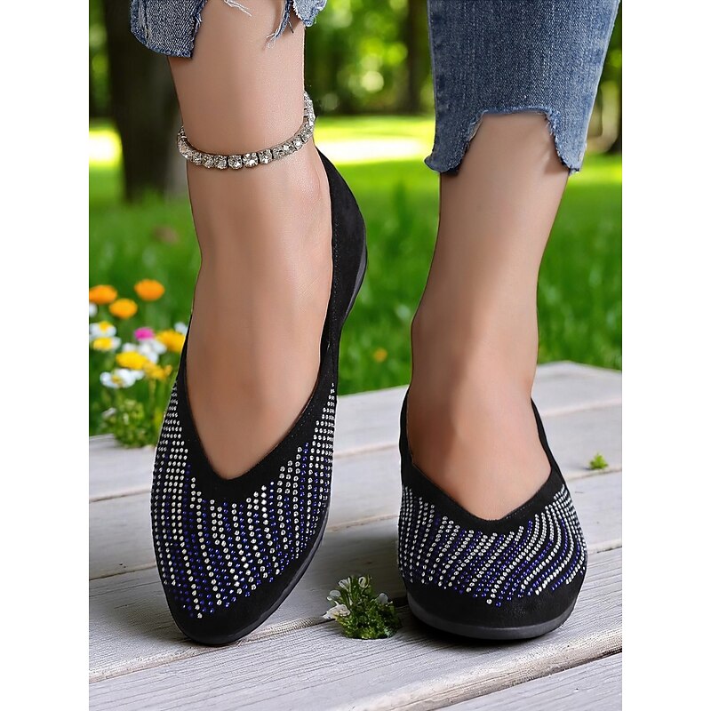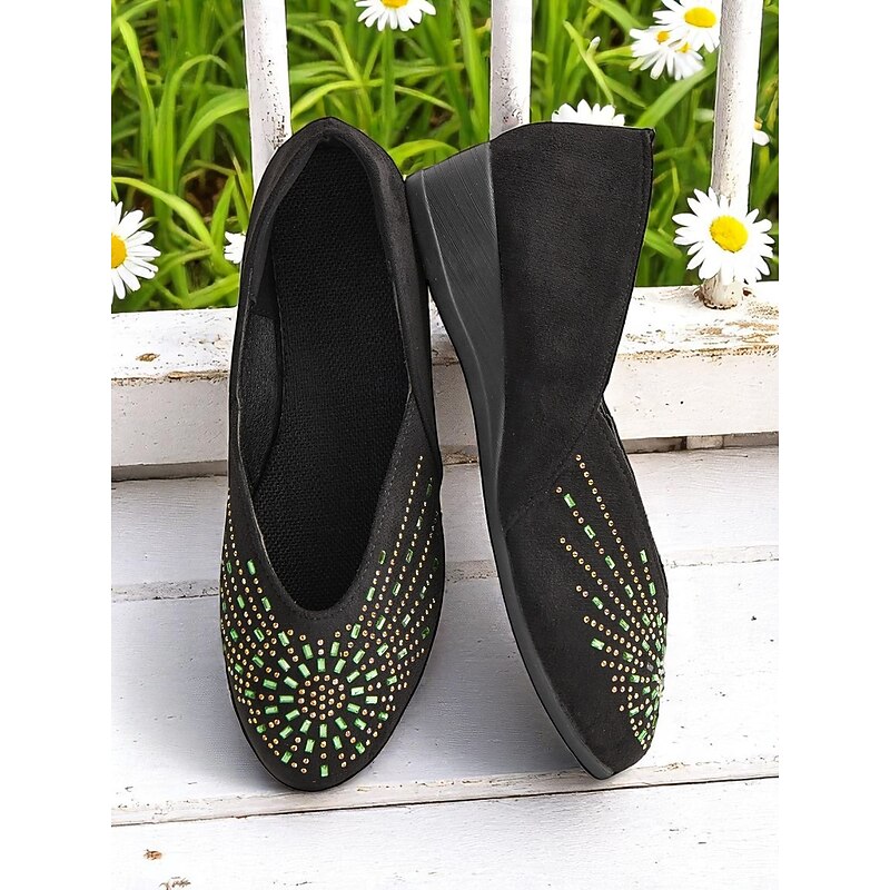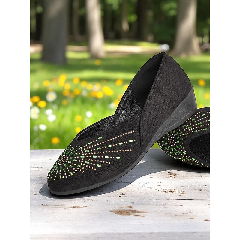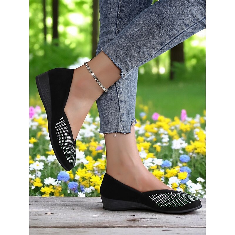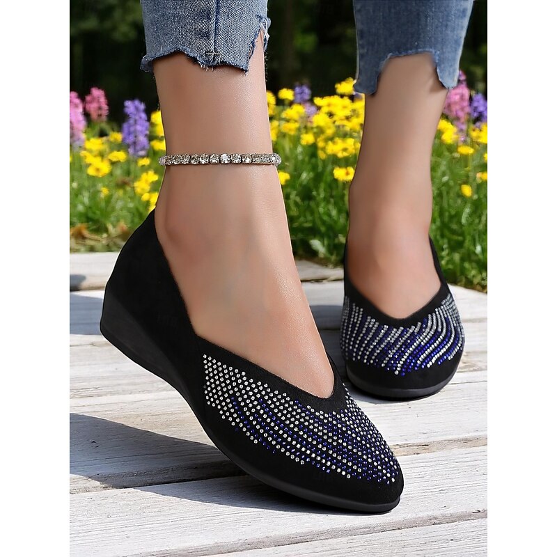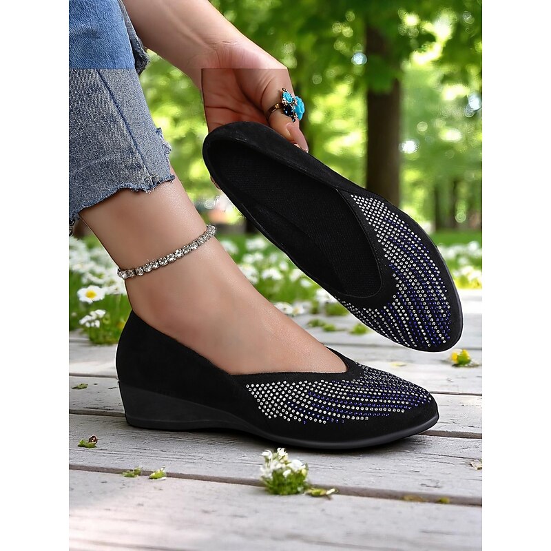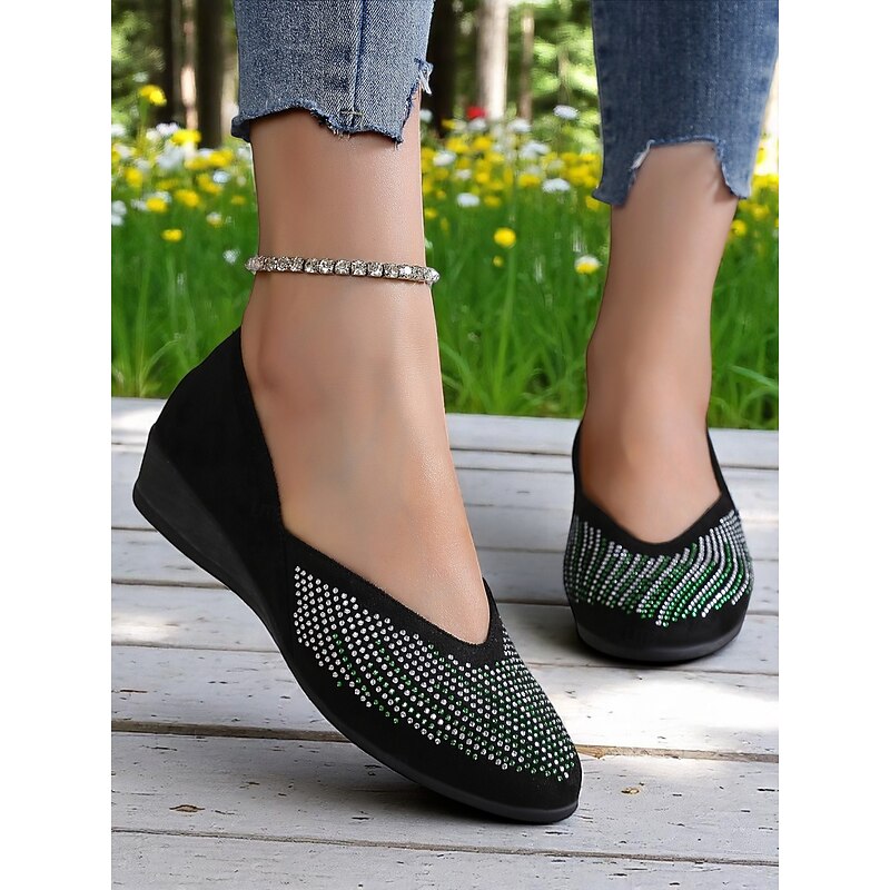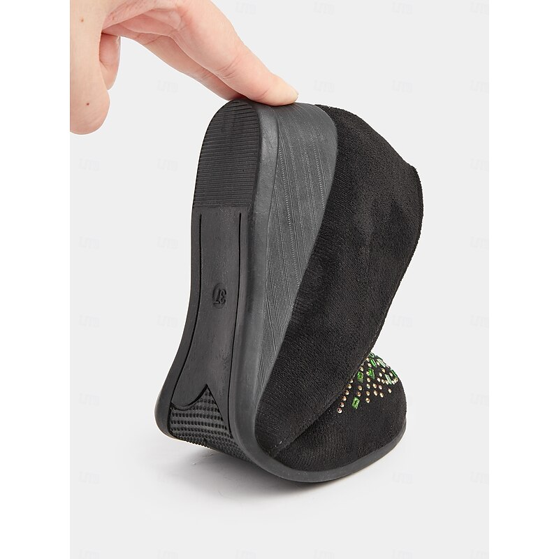 HOT ! Women's Rhinestone Wedge Flats – Sparkly Comfort Shoes for Oktoberfest, Beer Garden Parties, and Festive Outdoor Events