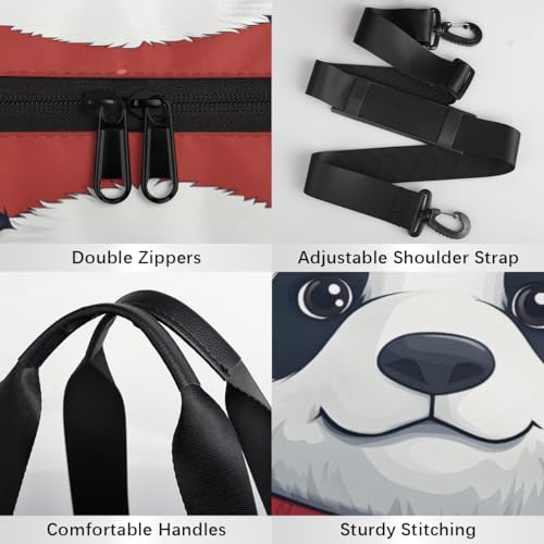 Fashionable Bear with Red Scarf Round Barrel Sports Fitness Bag, Travel Luggage Bag, Reusable Handbag, Suitable For Men and Women 6
