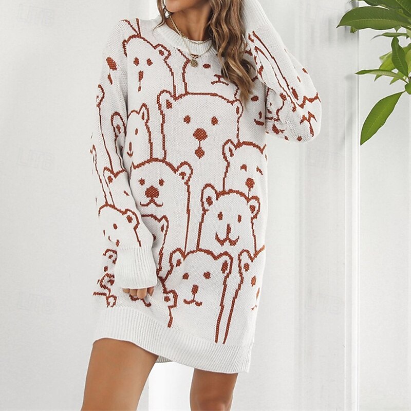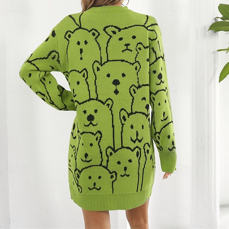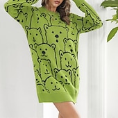 More information about Women's Mini Dress Sweater Dress Knit Dress Casual Dress Fashion Outdoor Party Holiday Regular Fit Animal Long Sleeve Crew Neck White Green Khaki Fall Winter