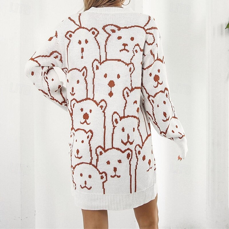 Women's Mini Dress Sweater Dress Knit Dress Casual Dress Fashion Outdoor Party Holiday Regular Fit Animal Long Sleeve Crew Neck White Green Khaki Fall Winter 11