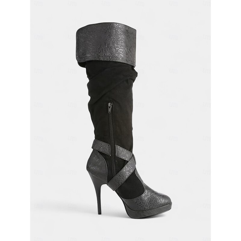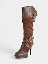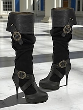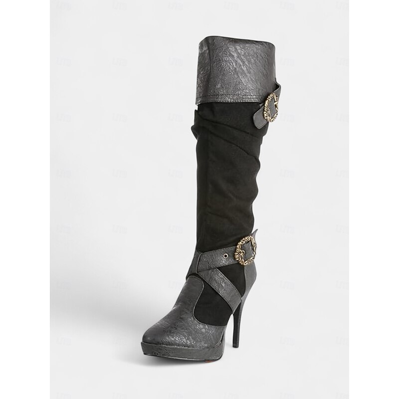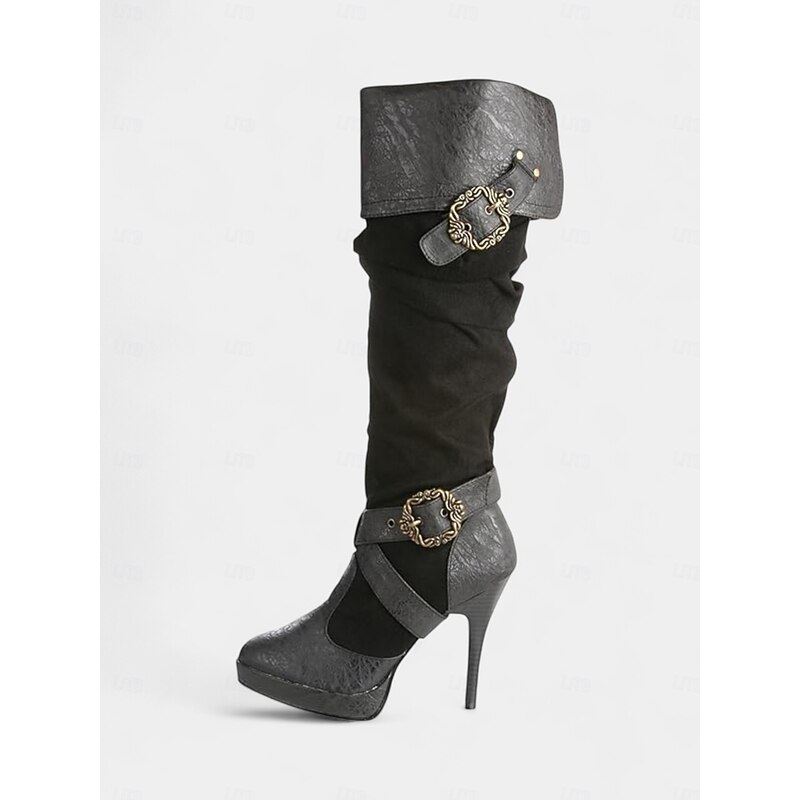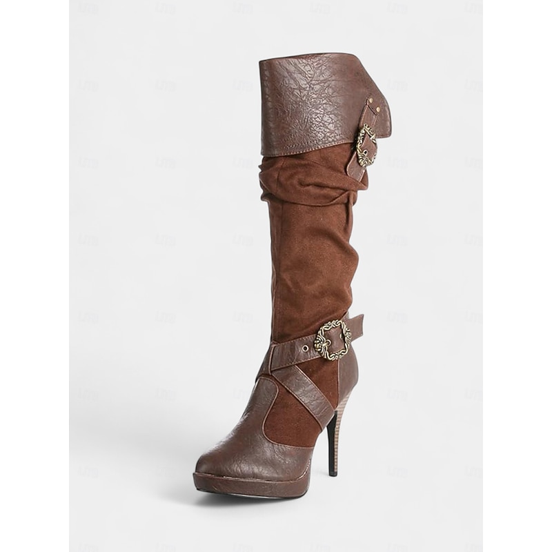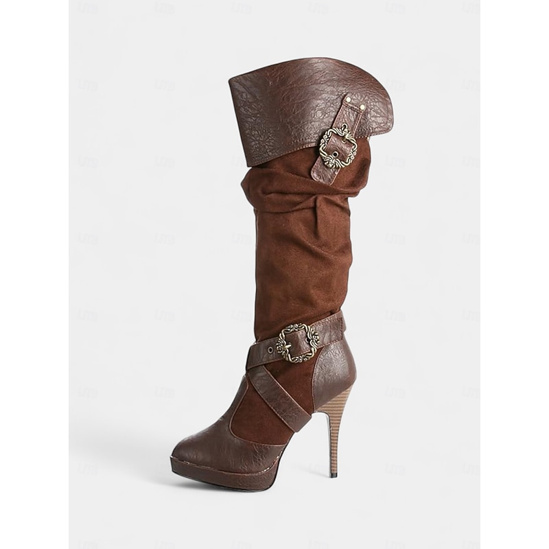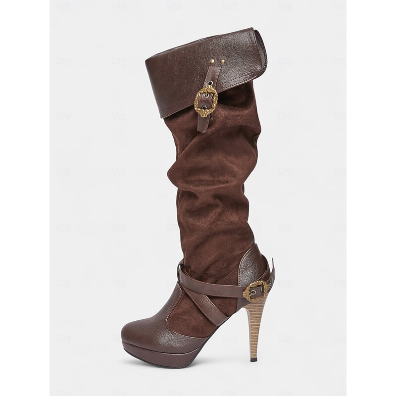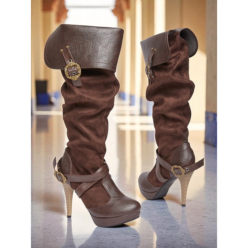 HOT ! Women's Brown Medieval Over-the-Knee Boots with High Stiletto Heels and Buckle Strap Design, Vintage Renaissance Style Fashion Boots for Costume Parties, Cosplay & Night Out