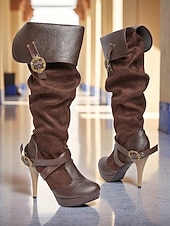 Women's Brown Medieval Over-the-Knee Boots with High Stiletto Heels and Buckle Strap Design, Vintage Renaissance Style Fashion Boots for Costume Parties, Cosplay & Night Out 20