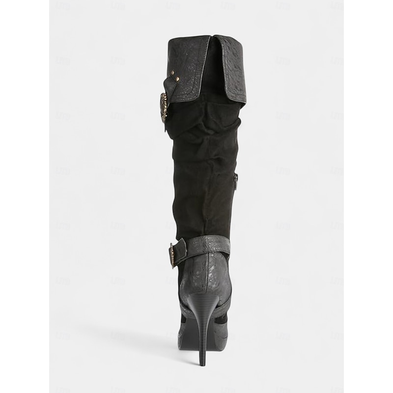 Women's Brown Medieval Over-the-Knee Boots with High Stiletto Heels and Buckle Strap Design, Vintage Renaissance Style Fashion Boots for Costume Parties, Cosplay & Night Out 13