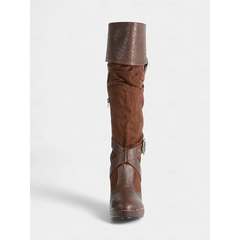 Women's Brown Medieval Over-the-Knee Boots with High Stiletto Heels and Buckle Strap Design, Vintage Renaissance Style Fashion Boots for Costume Parties, Cosplay & Night Out 4