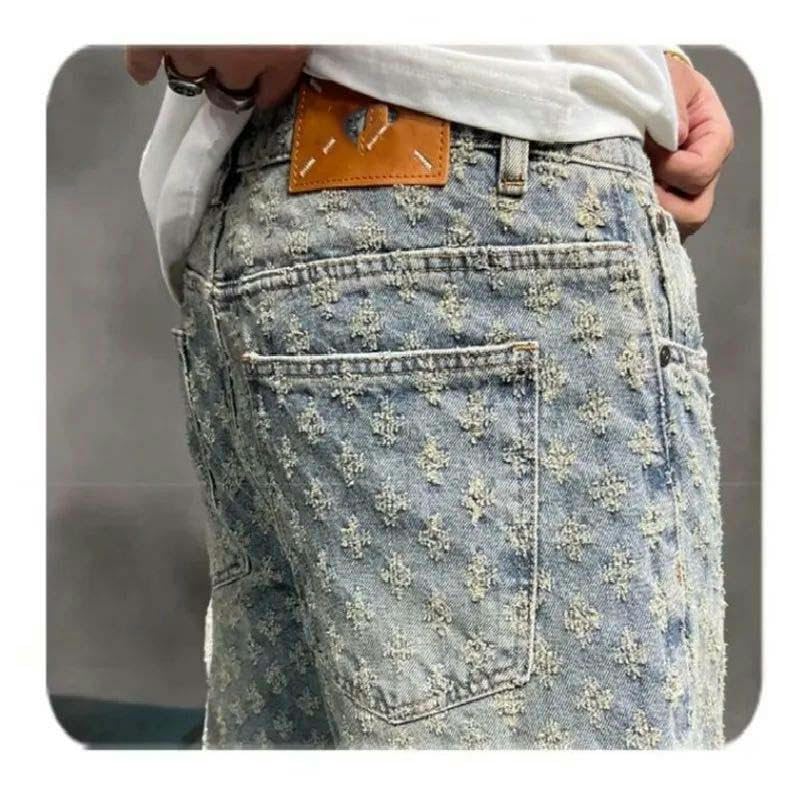 HOT ! Men's Straight Jacquard Loose Wide Leg Jeans Casual