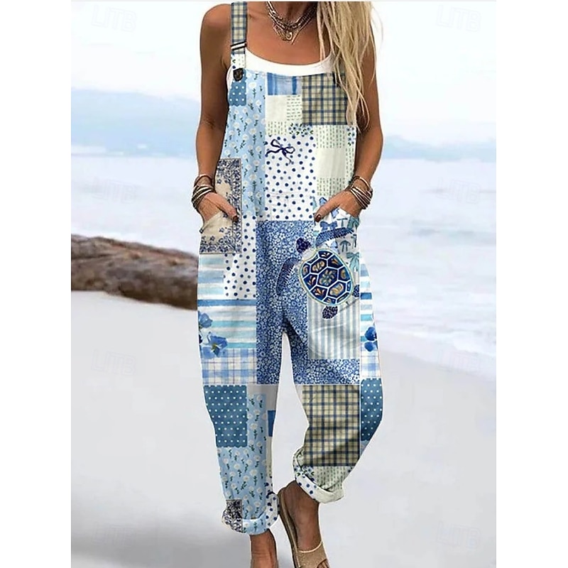 Women's Dungarees Active Graphic Sleeveless Straight Drawstring Vacation Daily Loose Fit Red Navy Blue Dusty Blue Summer 13