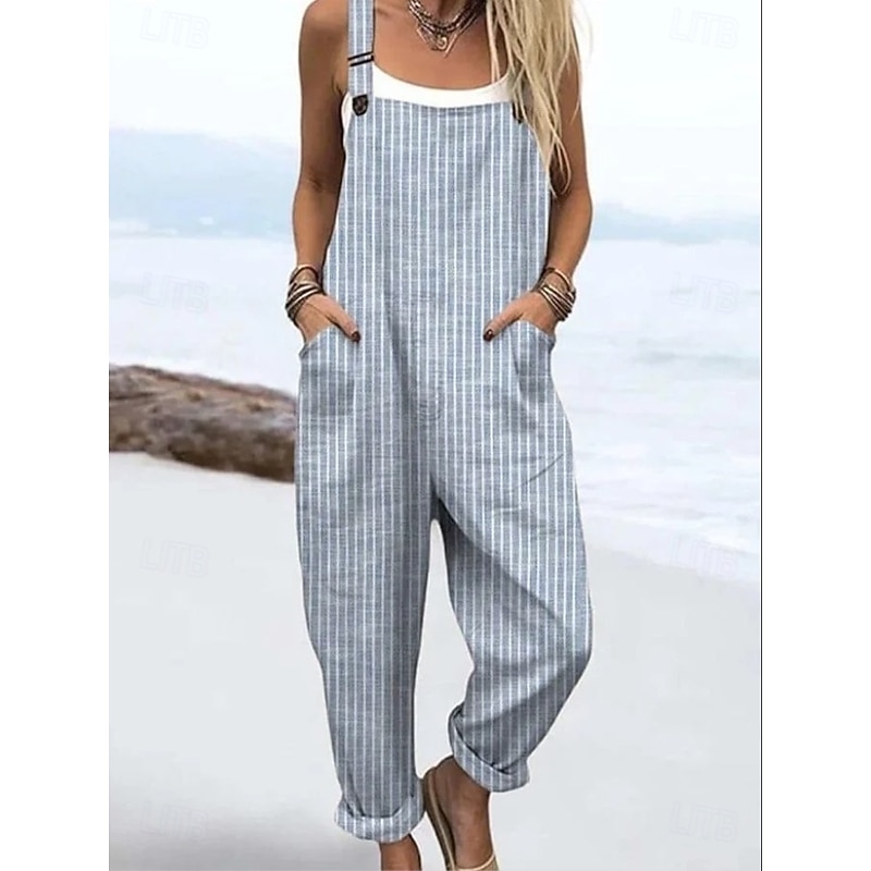 Women's Dungarees Active Graphic Sleeveless Straight Drawstring Vacation Daily Loose Fit Red Navy Blue Dusty Blue Summer 11