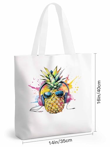 More information about Canvas Tote Bags,Grocery Shopping Cloth Bag Pineapple Headphone Reusable Shoulder Bags Tote Bag for Travel Work Gym