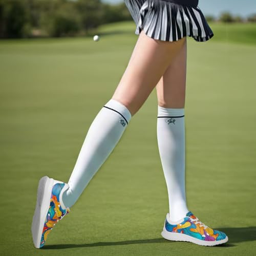 Colorful Spikeless Golf Shoes for Women,Tropical Floral Breathable Golf Sneakers Sports Shoes Fashion Footwear 6