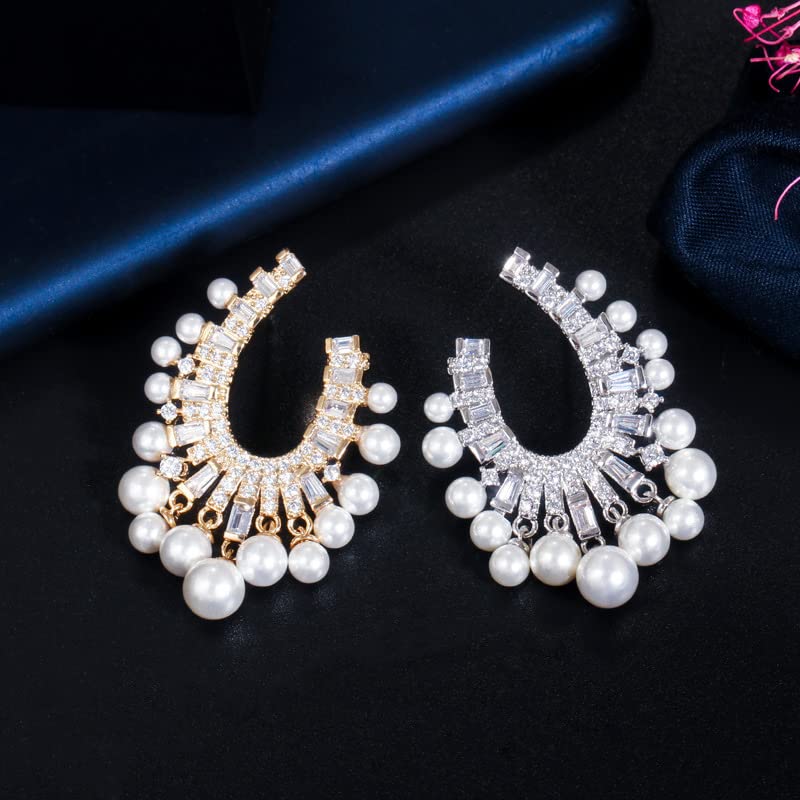 • 【Exquisite Design】This tassel hoop stud earrings are inlaid with sparkling crystals and moissanite, and a ring of freshwater pearls is suspended as decoration, full of layers, suitable for all occasions.