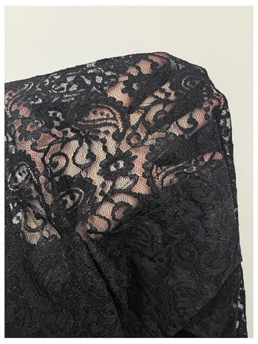 HOT ! Floerns Women's Contrast Lace Sheer Pants Elastic Waist Straight Leg Elegant Trousers