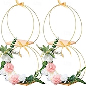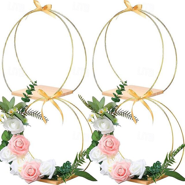 More information about 2 Pcs Flower Wreath Wood Base Metal Handmade Flower Wreath Wood Iron Ring Wedding Tabletop Decoration Diy Flower Wreath Decoration