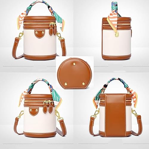 HOT ! Summer Niche Design Cylinder Bag, Colorblock Bucket Bag for Women, Leather Bucket Handbag