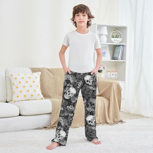 ZZXXB Skull Mushroom Boys Long Pants Soft Trousers Elastic Waist Kids Lounge Bottoms with Pockets S-XL 4