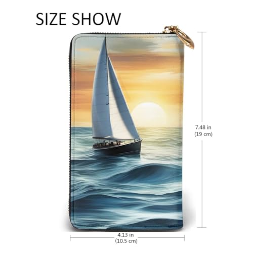 HOT ! Ocean Sailboat Prints Leather Long Clutch Wallet for Fashionable Girls and Women - Durable, Stylish, and Functional, Black, One Size