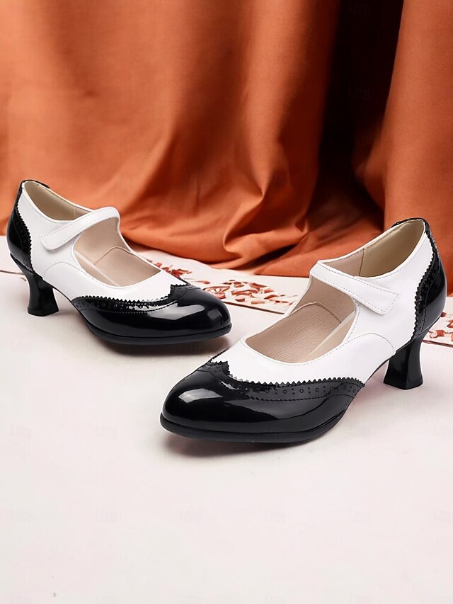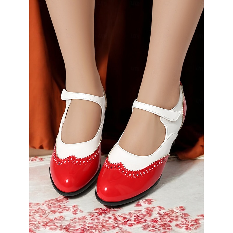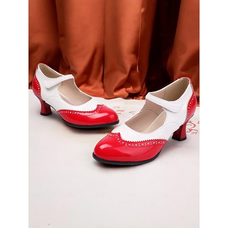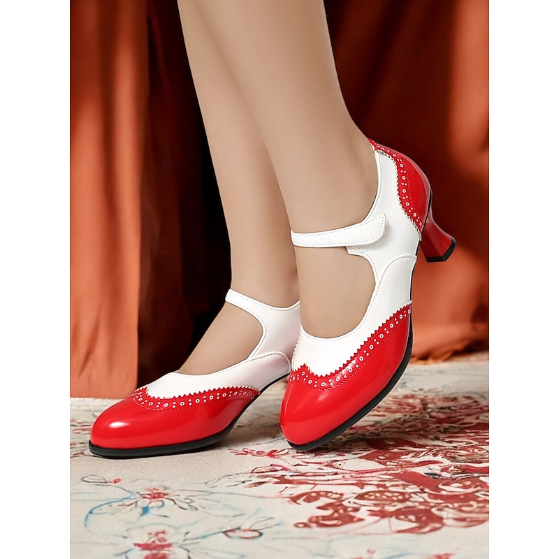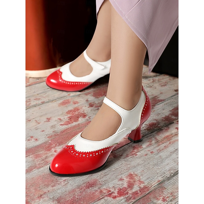 HOT ! Women's Vintage Gatsby Red and White Mary Jane Heels-Classic 1920s-Inspired Brogue Shoes for Retro Fashion, Dance, and Special Occasions