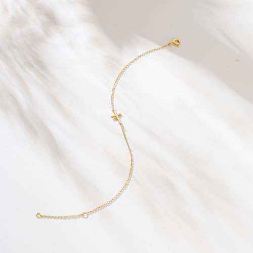 LUCA SMITH 925 Sterling Silver Cross Bracelet for Women Adjustable Stackable Dainty 14K Gold/Silver Cute Tiny Symbolic Cross Pendant Charm Link Chain Faith-Based Jewelry 7