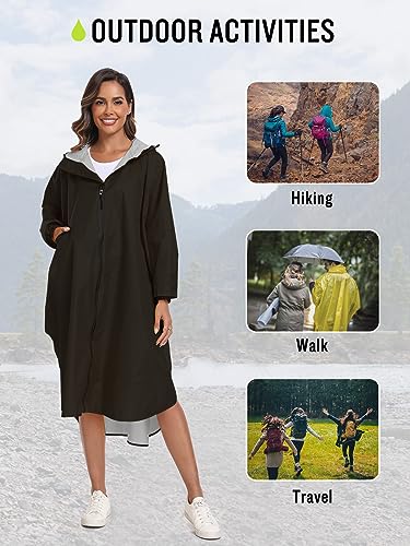 SaphiRose Long Sleeve Rain Jacket Extra Length Waterproof Rain Poncho with Hood and Pockets for Adults 3