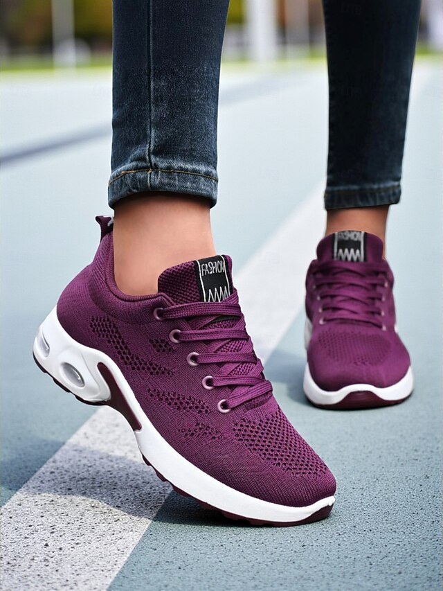 HOT ! Women's Purple Flyknit Running Shoes – Lightweight Breathable Sport Sneakers for Gym, Jogging, Walking and Everyday Casual Wear