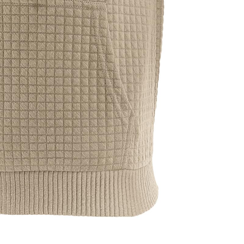 • Design:Casual pullover hoodies featuring waffle pattern for visually striking texture, solid color, pleated long sleeve, with adjustable drawstring and front kangaroo pocket. Simple and stylish for daily wear.