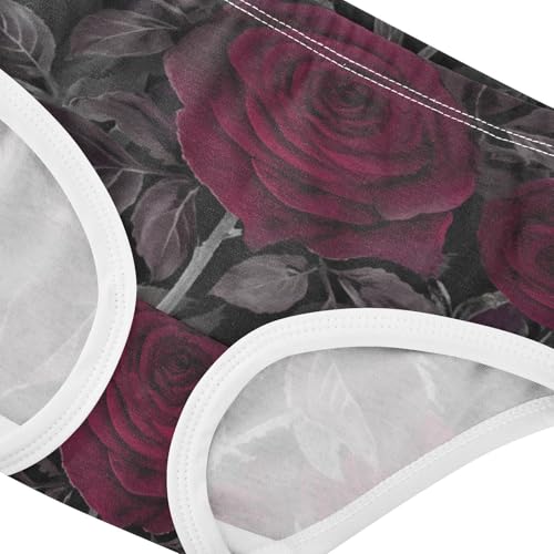 HOT ! Watercolor Burgundy Roses Toddler Girls Panties, Cotton Underwear Girls, 2T–8 Years
