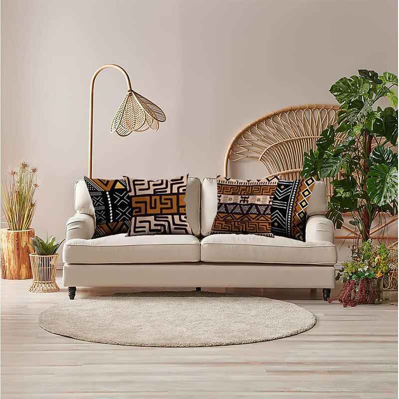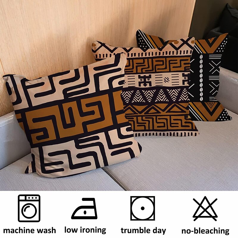 HOT ! African Mudcloth Boho Ethnic Double Side Pillow Cover 4PC Soft Decorative Square Cushion Case Pillowcase for Bedroom Livingroom Sofa Couch Chair